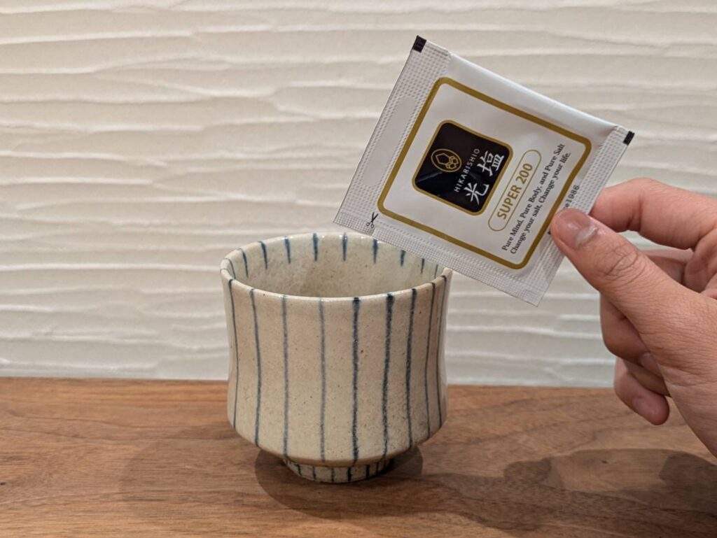 å å¡©ããæ¹¯ã«æº¶ãããŠé£²ã¿ãŸãã